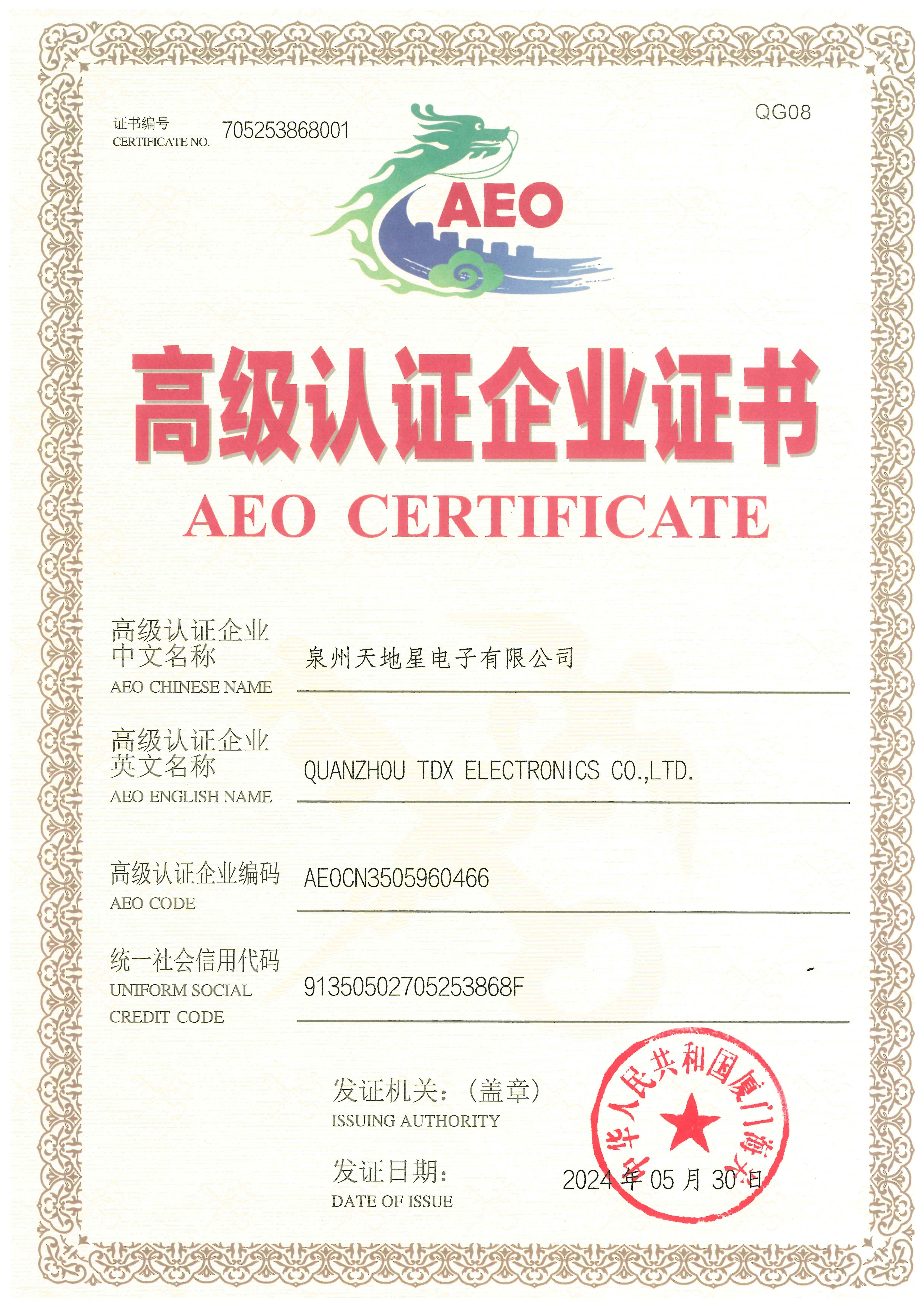 AEO CERTIFICATE